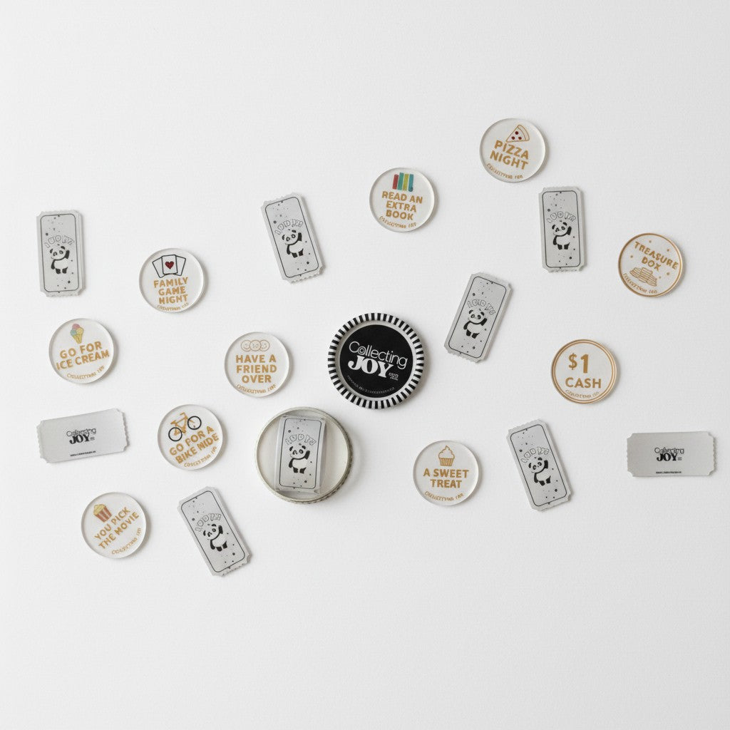 Tokens are the perfect add-on to any reward system. They’re compact, offer lots of variety, and make it easy to reward kids of different ages in the same household.