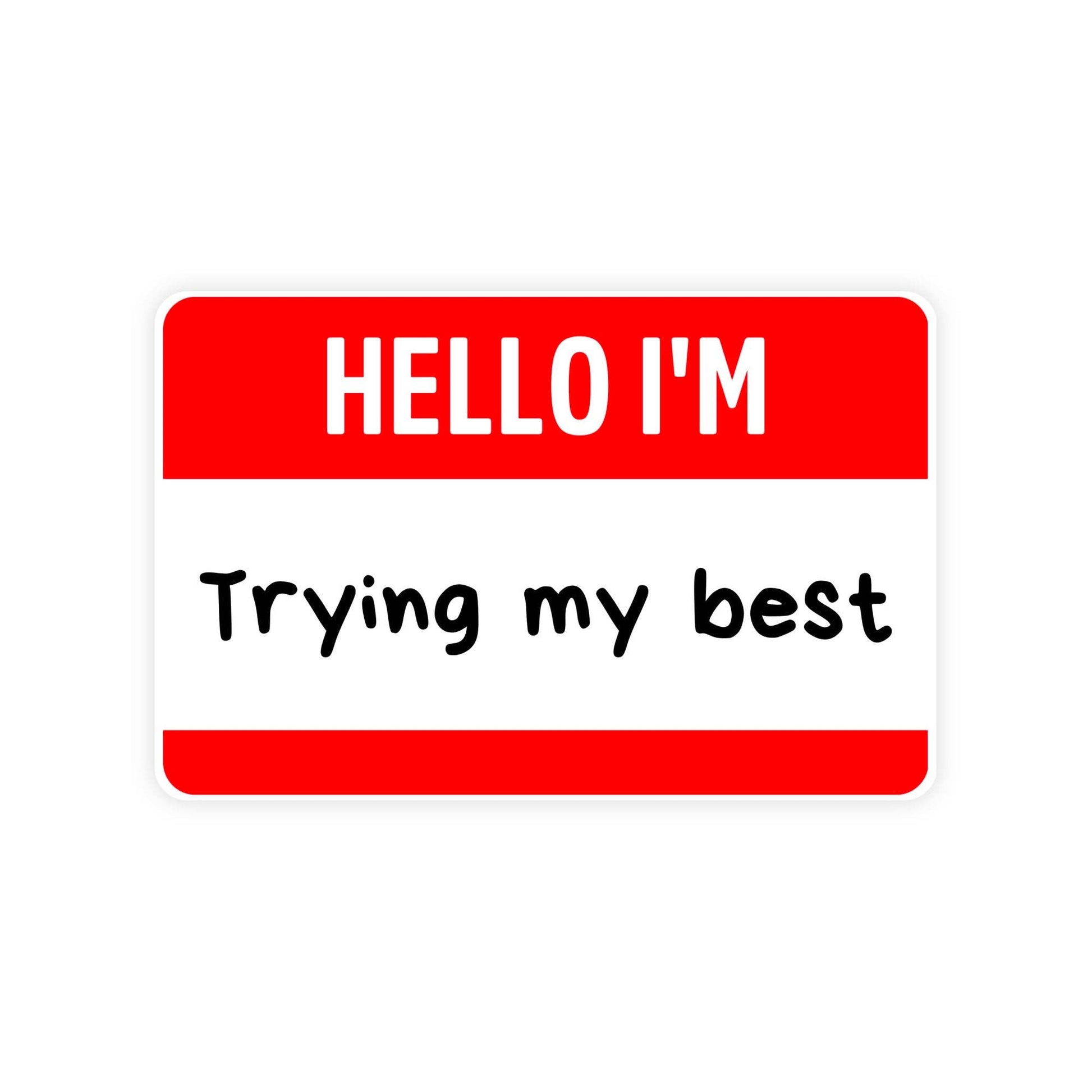 Hello I'm Trying My Best Name Tag Waterproof Vinyl Sticker